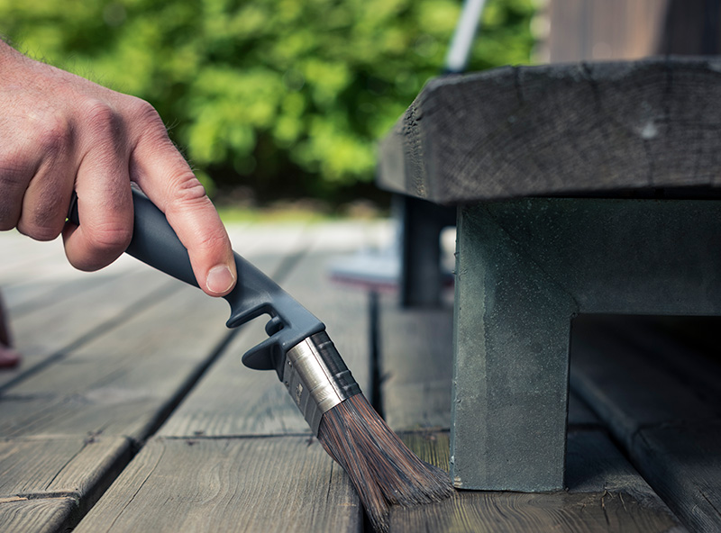 Applying oil with a roller is just as good as with a brush, but using a roller saves time and energy. Try Anza’s terrace 2-in-1 tool, which is specially designed for all types of terrace treatments. The pad covers two boards at a time and makes the work go faster than with a regular brush.